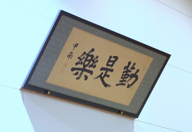 仙台市武道館柔道場に掲げられている柔道を創設された嘉納治五郎先生直筆の書、「楽是勤」を