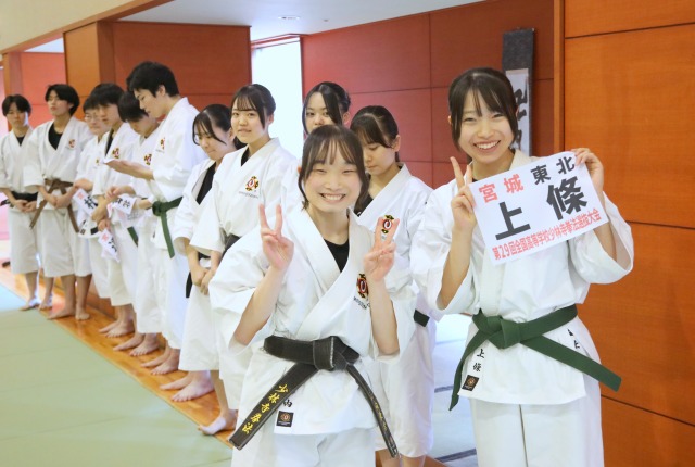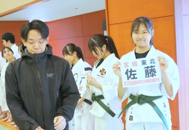 3月1日に卒業式を終えた東北高校の拳士達が7日(土)に挨拶に来てくれました。11名の拳士達が新しいステージへのスタートをきりました。今日は鎮魂行の主座と打棒を担当してくれ、また選抜大会の出場拳士13名へゼッケンを渡してもらいました。