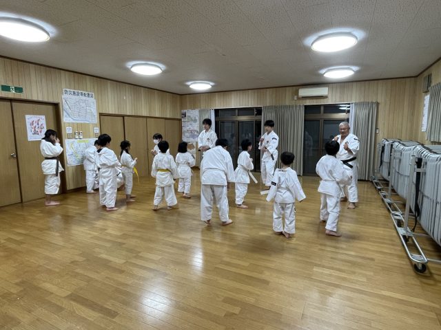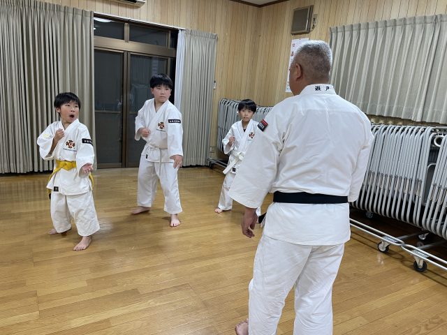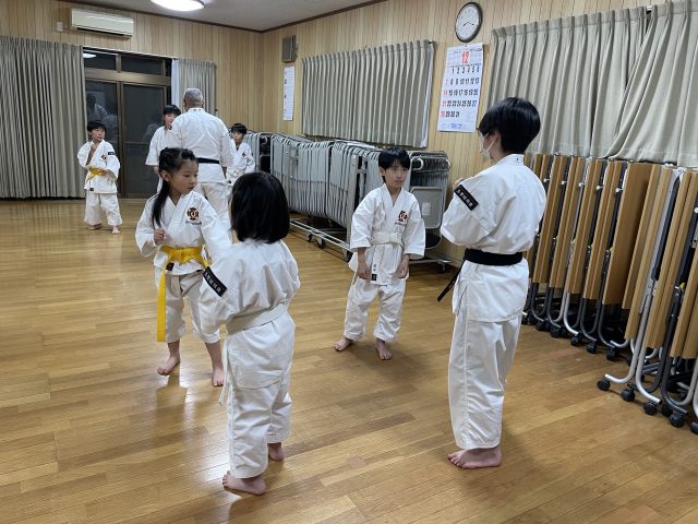 体験者が入門して見習い拳士が多くなり、中学生の協力を頂きながらの修練