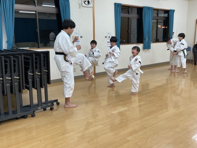 その後各ランクに分かれて易筋行 中学生の黒帯の拳士の協力をもらいながら