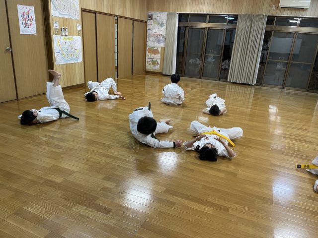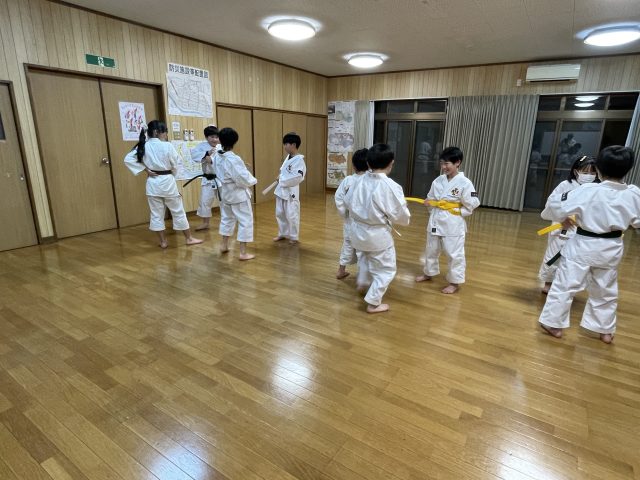 この後互いに向かい合って基本の突き蹴りを行いました。