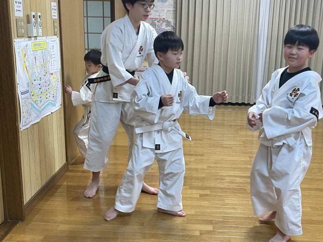2026年2月2日 今日も中学生の体験者が来て突き蹴り鈎手などの体験をしていただきました。
