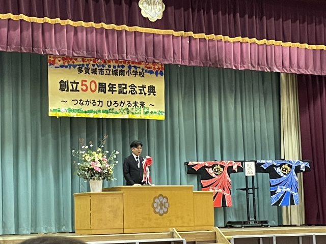 2025年10月17日多賀城市立城南学校創立50周年記念式典に参加しました。特別ゲストとして俳優の千葉雄大さんが来ていました。