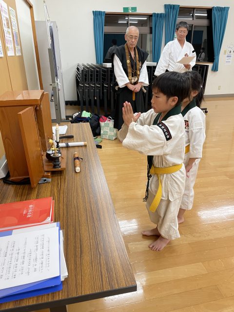 今回は年少拳士から感謝状が贈られました。妻にも花束と感謝状をいただきました。