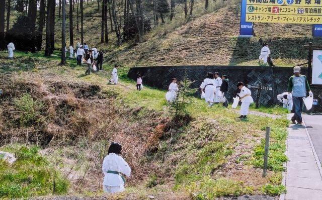👆️👇️開祖デーのゴミ拾い。気仙沼、本吉道院も一緒でした。