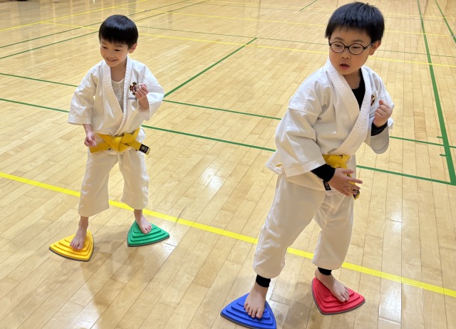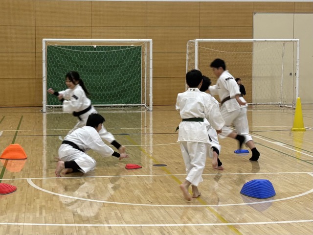 寒くて足が冷たい中、みんな元気いっぱいに体を動かしてます。